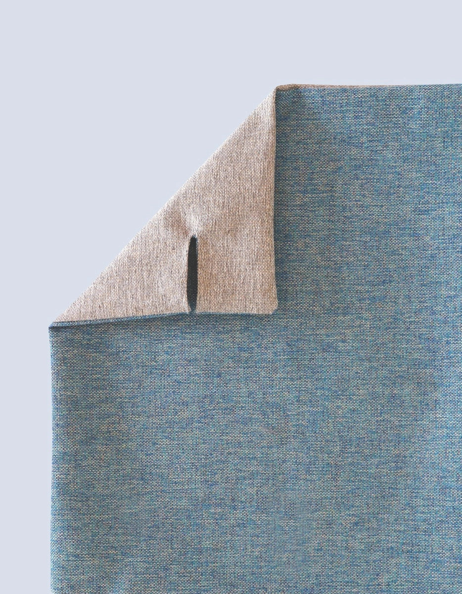 Kaksipuolinen kangas tekee tuotteesta käytännöllisen ympäri vuoden: lämmin puoli talveen ja viileä puoli kesään.